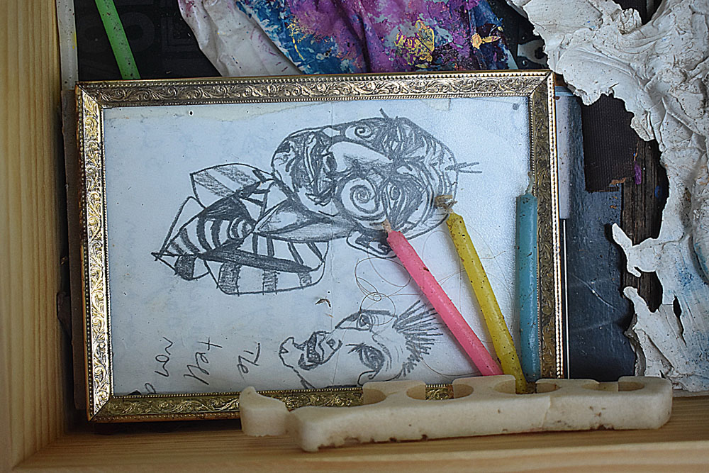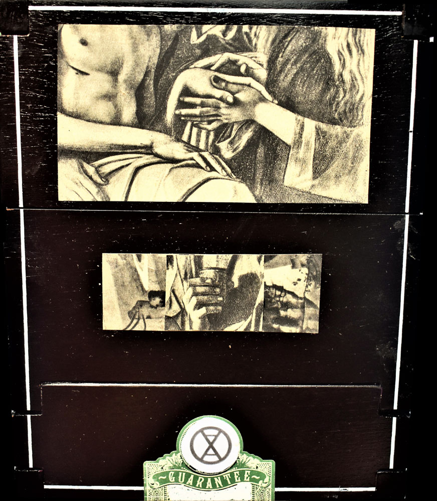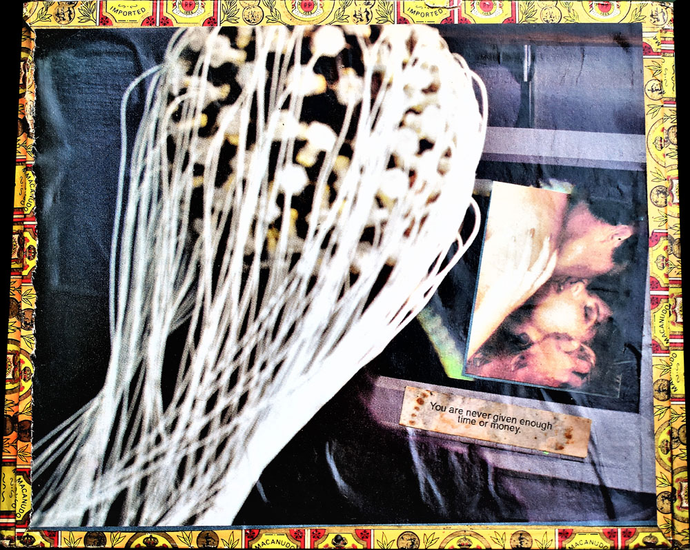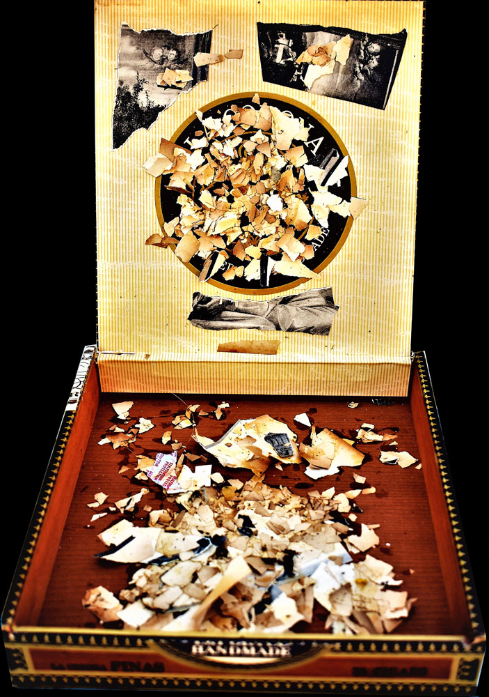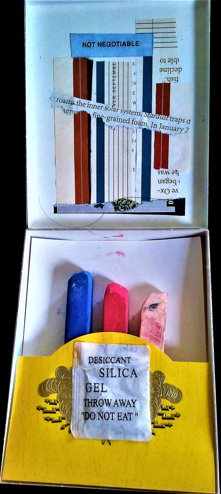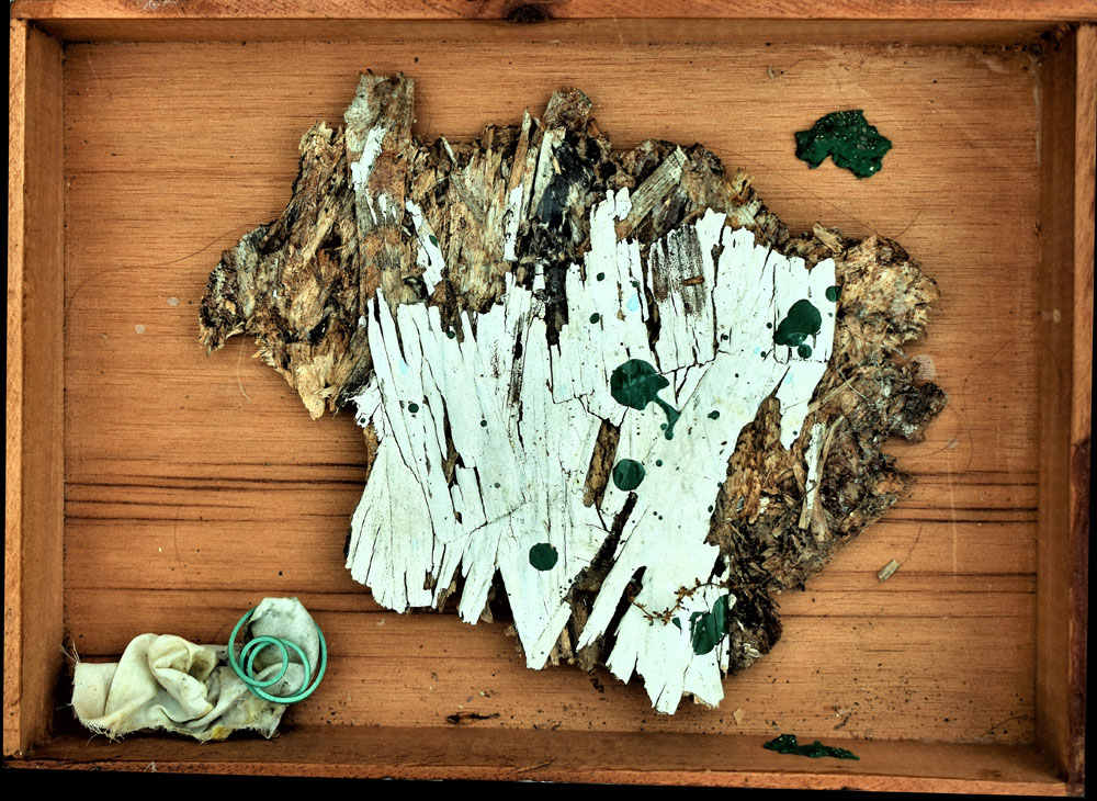 The Combines of Mixed Media, Found & Fabricated Objects, Organium, recomposed Decomposition, Fummage , dust, rust, crust, tree bark, ashes, bronze, ceramics, pearls, fabric, dried flowers, or unidentifiable combinations with dismembered objects renewed, reassembled, etc… all combined into or within non-artistic or non-aesthetic materials with emphasis on the adaptation of conjecture within a wooden, metal, paper, Plexiglas or another enclosed or open ended space.