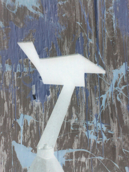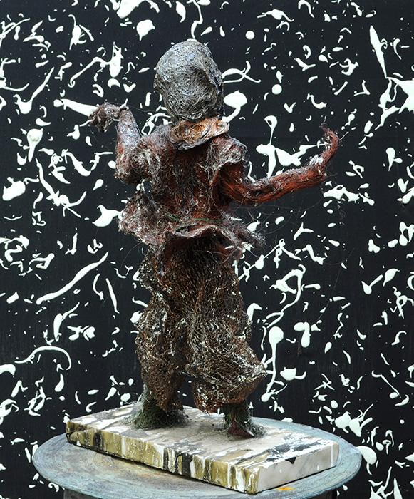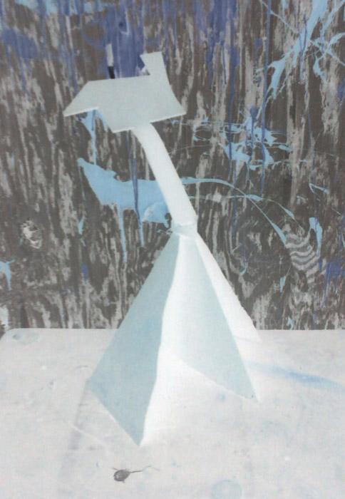 Silver, paint on steel mesh, steel fibers, steel rods, on white marble. 1990